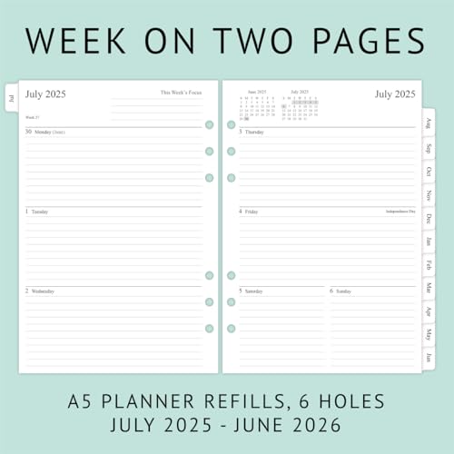 RETTACY Undated Planner Weekly and Monthly 53 Weeks and 12 Months Medium Size (5.7"" x 8.3"") 24 Self-adhesive Monthly Tabs Hardcover 100 GSM Thick Paper Spiral-bound (Light Green)
