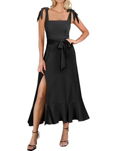 ANRABESS Women's Square Neck Ruffle Split Midi Elegant Forma...