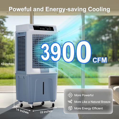 Stay cool and comfortable all summer with the Air Choice 3-in-1 Evaporative Air Cooler a versatile portable AC that combines the functions of a fan air cooler and humidifier into one powerful unit. This swamp cooler uses advanced evaporative cooling technology to transform warm air into refreshing cool breezes providing instant relief with up to 15 hours of cooling time thanks to its 6 ice packs and 5.3-gallon water tank for fewer refills. Perfect as a windowless air conditioner or portable swamp cooler indoor it features 110° wide oscillation to evenly distribute cool air making it an ideal room cooler or garage air conditioner. With 3 modes (cool/fan/humidifier) and 3 wind speeds (low/medium/high) this evaporative cooler offers customizable comfort while the dual-directional air swing ensures a more comfortable non-direct airflow. The upgraded remote control and LED control panel allow you to effortlessly adjust settings from up to 26 feet away and its ultra-quiet 52dB ope