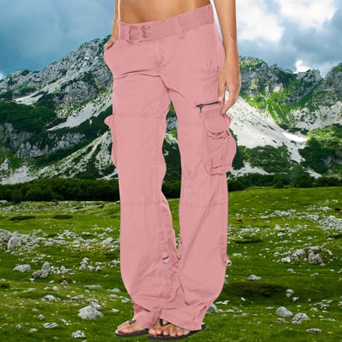 Pink Cargo Pants for Women Baggy 2025 Spring Trendy High Wai...