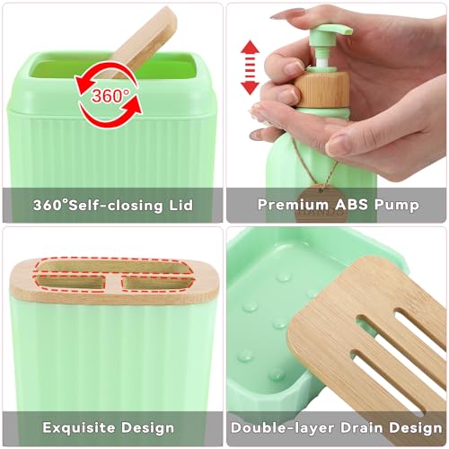 Z ZONAMA 22 Pcs Bathroom Accessories Set What Is Include? 1 × Jacquard Shower Curtain 12 × Hetal Shower Curtain Hooks 1 × Bathroom Trash Can 1 × Toilet Brush and Holder Set 1 ×Toothbrush Holder 1 × Soap Dispenser 1 ×Tumbler 2 × Cotton Swab Box 1 × Soap Dish 1 × tray Product Features ● Premium Materials: Our products are crafted from PP and rayon fiber designed to enhance your bathroom experience with a clean and pleasant feel. ● Multifunctional Design: Each item is thoughtfully designed to help organize and store your daily essentials keeping your bathroom neat and clutter-free. ● Long-Lasting Quality: Made from sturdy materials simply wipe with mild soapy water and a soft cloth to maintain a fresh look ensuring long-lasting use and practicality. ● Modern Style: Featuring a minimalist design this set combines functionality with aesthetic appeal making it a perfect addition to any