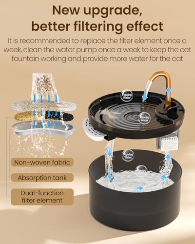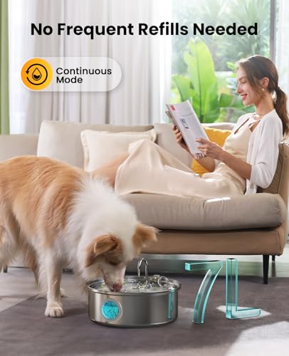SEIRMEP Stainless Steel Cat Water Fountain 101oz/3L Automatic Pet Water Fountain Dog Water Fountain with Replacement Filters for Cats Small Dogs (2 Filters and 2 Sponges)