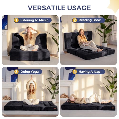 MAXYOYO Adjustable Floor Sofa Couch with 2 Pillows Multi-Functional Bean Bag Bed 5-Position Foldable Lazy Sofa Sleeper Bed with Armrest Versatile Floor Seating for Reading Black Double Price in USA