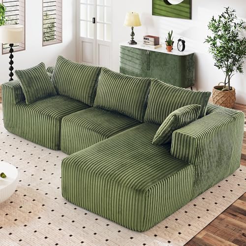 WorthFurni 102"" Cloud Sectional Couch with L-Shape Chaise Modern Modular Sofa with Deep Seat Upholstered Couches for Living Room Bedroom No Assembly Required Plush Corduroy Fabric(Green) Price in USA