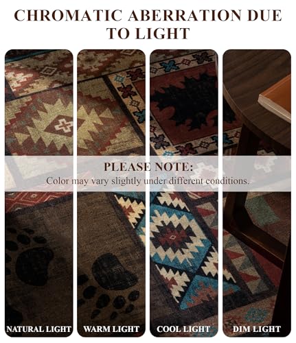 Washable Rug This rustic cabin rug is machine washable and easy to clean. Wood dust or dirt can be removed with a vacuum cleaner or robot vacuum cleaner drink stains can be wiped with a damp cloth and for deep cleaning please use a washing machine. Pet Friendly & Non Slip No shedding and low pile fiber is healthy and it is friendly to pets. The area rug adopts TPR backing which is a safer and more friendly non-slip material. Which can effectively prevent from slipping or falling. Country Element Design The country cottage rug showcases southwestern style and design elements such as bears deer and bear paws which can add more color to your home. If you love the outdoors this rug will bring a natural outdoor look to any room. Low-Pile Throw Rug This bedroom bear rug is made of imitation cashmere material with an overall height of 0.24 inches/6MM. It can be placed under most doorways or furniture and a sweeping