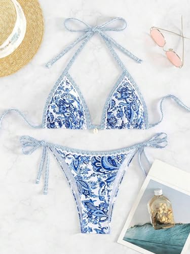 BYFINECANY Women's Floral Printed Bathing Suit Halter Paisle...