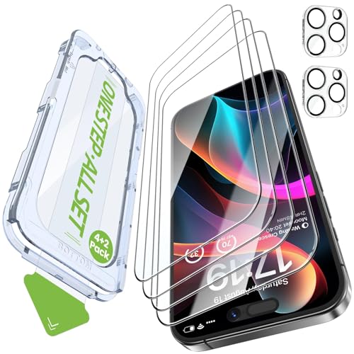 iGluz 4-Pack Screen Protector for iPhone 15 Pro Max with 2-P...