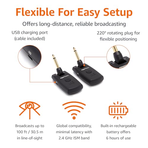 Amazon Basics Digital Wireless Guitar System Transmitter/Rec...