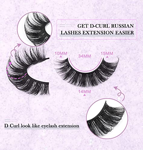 False Eyelashes Russian Strip Lashes D Curl Wispy Natural Lo...