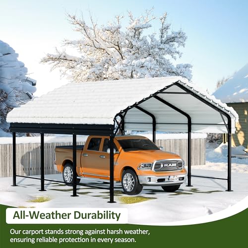 JAMFLY 12X15 FT Carport Heavy Duty Carport Canopy with Galva...