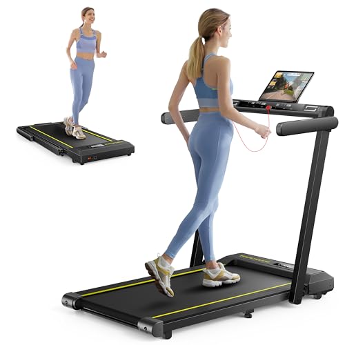 TOPUTURE Walking Pad Under Desk Treadmill with Incline 2 in 1 Folding Treadmill for Home/Office Portable Compact Treadmill with Remote Control APP & LED Display 300LBS Capacity