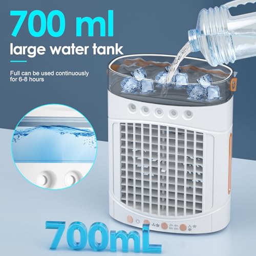 Portable Air Conditioners 4-in-1 Portable Air Cooling Fan with 1000mL Tank 3 Speeds & Remote - 2-8H Timer 7-Color LED - Mini Evaporative AC Unit for Camping Office Bedroom Car