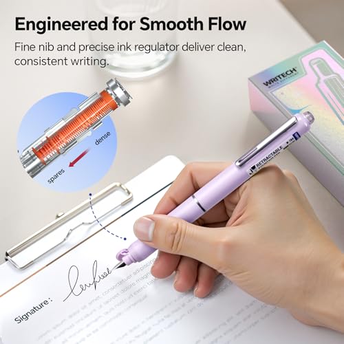 WRITECH Retractable Fountain Pen Set: Fine Nib Black Ink Pre...