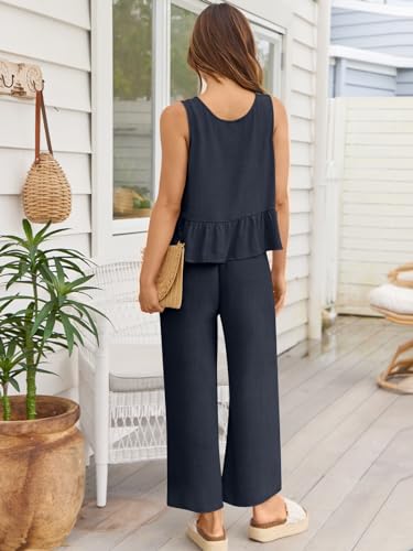 AUTOMET Womens Summer 2 Piece Outfits Linen Crop Tank Tops L...