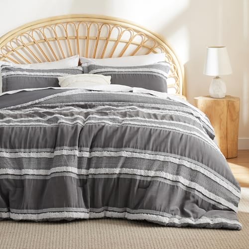Bedsure Boho Comforter Set Twin - Dark Grey Jacquard Bedding...