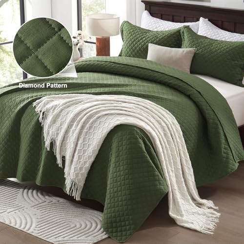 SunStyle Home Quilt Set Queen Olive Green Lightweight Bedspr...