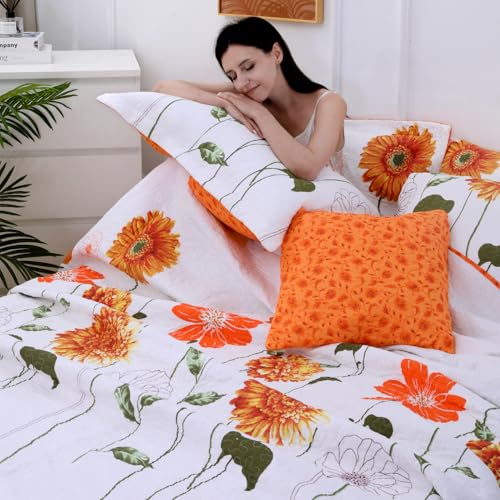 EVENHUG 100% Cotton Quilt Queen Size Orange Sunflower Beddin...