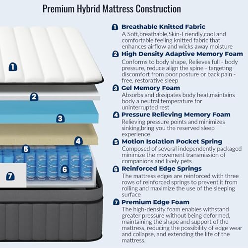 DEHIJU Full Size Mattress 10 Inch Hybrid Memory Foam Full Ma...
