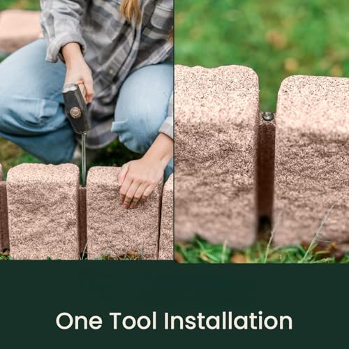 VEVOR Faux Stone Landscape Edging No Dig Garden Edging Border Flexible Blocks for Lawn Edging Flower Beds Driveway Yards with 12 Spikes 4 Pack 24 Bricks 16FT Kit 46.9"" Lx 4"" W x 6"" H Beige