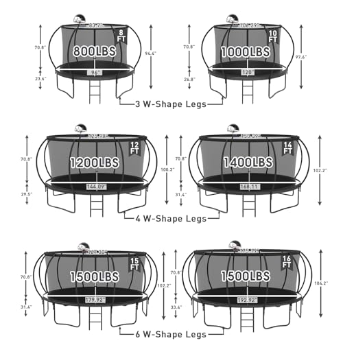 SKYUP 2024 Upgraded 8 10 12 14 15 16 FT 1500lbs Tranpoline f...