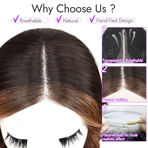 Eawwii Short Wavy Wig for Women Brown Highlight Lace Hairlin...