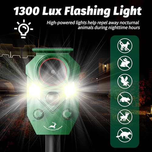 Keep your lawn garden farm and outdoor spaces free from destructive burrowing pests with our Solar Powered Mole Repellent Spikes. Designed to effectively repel moles gophers voles groundhogs and even snakes. Ultrasonic Vibrations for Effective Pest Control: Our repellent spikes emit powerful ultrasonic waves every 30 seconds creating 3-5 second vibrations that disturb pests underground forcing them to leave your yard. This sonic vibration technology is ideal for repelling burrowing rodents and keeps your lawn safe from costly damage. Wide Coverage Area: With each mole repellent spike covering up to 5 000 sq.ft. you can protect your entire yard garden or farm from unwanted pests. Whether you have a small garden or a larger lawn these stakes will ensure effective coverage and protection for your plants flowers and vegetables. Solar Powered & Waterproof: Enjoy the convenience of 24/7 protection without worrying about battery replacements. Equipped with an upgraded solar pane