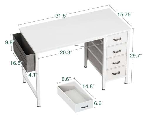 Casaottima 40"" Small Computer Home Office Desk for Bedroom with Fabric Drawers & File Cabinet Cloth Storage Bag and Hook Writing Study Work Table for Small Space White Price in USA