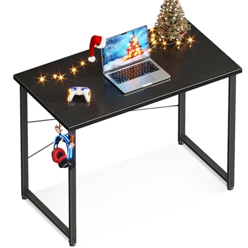 Casaottima 40"" Small Computer Home Office Desk for Bedroom with Fabric Drawers & File Cabinet Cloth Storage Bag and Hook Writing Study Work Table for Small Space White