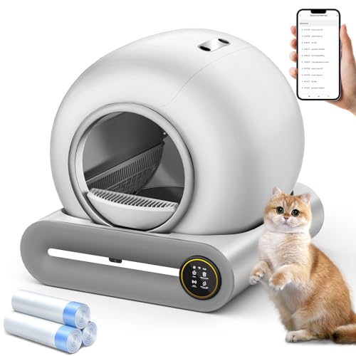 TAYACICY Self Cleaning Litter Box Large Capacity Automatic Cat Litter Box Self Cleaning for Multiple Cats with App Control and Safety Protection 2 Roll Litter Bags White