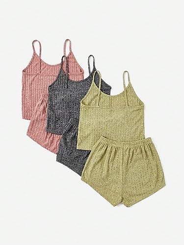 GORGLITTER Women's 3 Sets Ribbed Pajamas Set Sleeveless Crop...