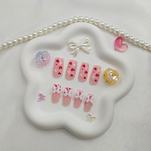 Glamnetic Press On Nails - Honeymoon | Short Almond Nude Fake Nails with 3D Nail Art and Glossy Velvet Finish Reusable Wedding Nails | 15 Sizes - 30 Nail Kit with Glue