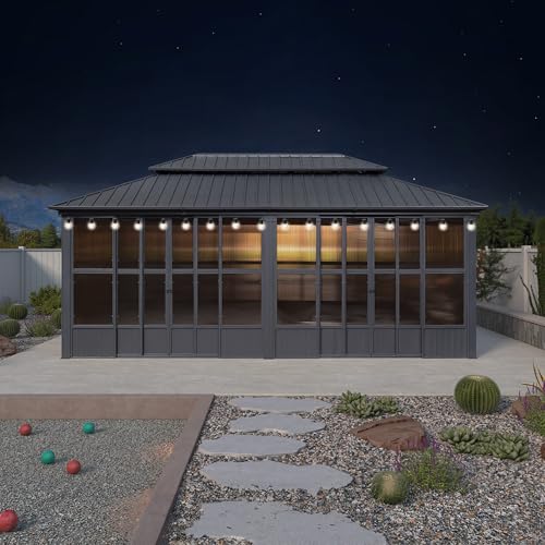 PURPLE LEAF 12' X 20' Sunroom with Light Permanent Hardtop G...