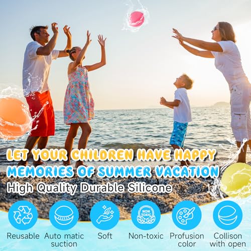 Reusable Water Balloons for Kids 12Pcs No Magnets Silicone Leak-Resistant Refillable Water Balls Balloons Summer Water Toys Splash Balls for Outdoor Backyard Lawn Beach Fun Games for Boys Girls (12)