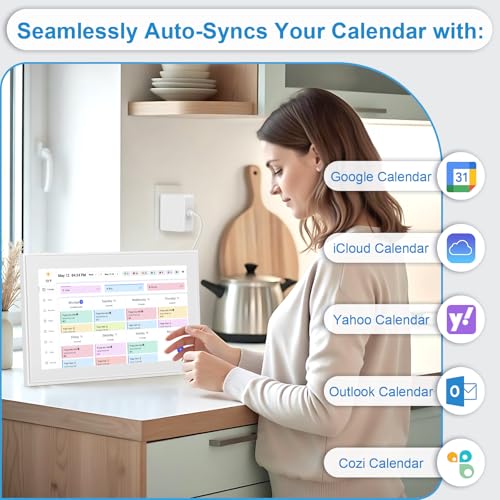 BQQJDD 10.1 Inch Digital Calendar+Digital Picture Frame 2025-2026 Desk Calendar Smart WiFi Planner&Chore Chart IPS HD Interactive Touchscreen Display For Family Schedules
