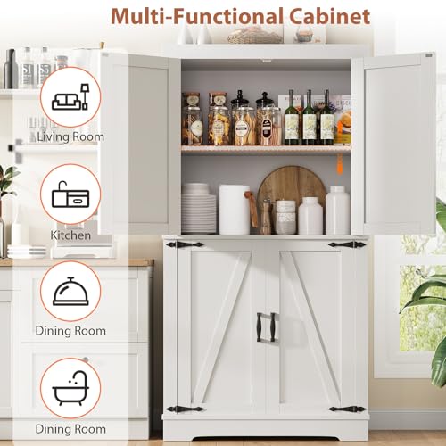 Pantry Cabinet 68'' Kitchen Pantry Storage Cabinet with 4 Do...