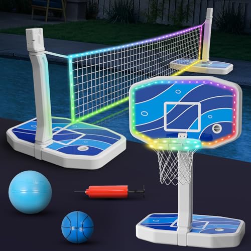 Jocoevol 2-in-1 LED Pool Basketball Hoop Poolside & LED Pool...