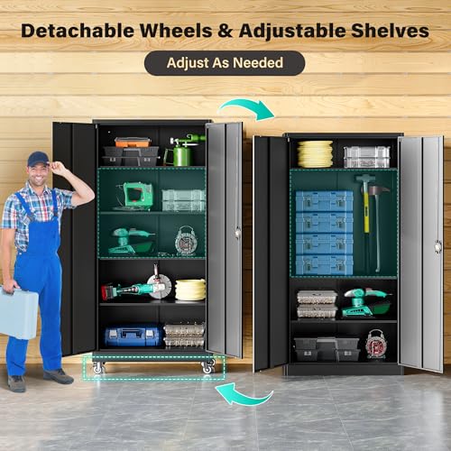 SISESOL Metal Storage Cabinet with Wheels 75 inch Rolling Ga...