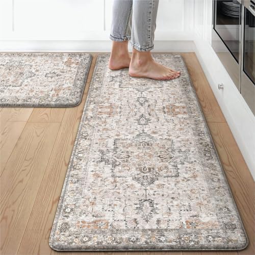 GENIMO Kitchen Rugs Sets of 3 Non Slip Washable Kitchen Mats for Floor Waterproof Abstract Kitchen Runner Rug Floor Mat Carpet for Hallway Laundry Sink Entryway Bathroom Blue&Ivory Price in USA