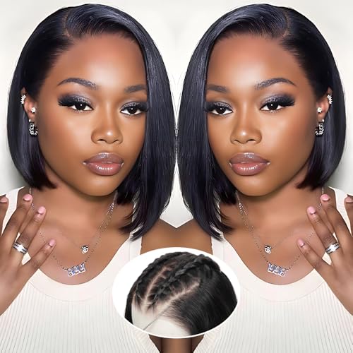 mscoco Wear and Go Glueless Wigs Human Hair Pre Plucked Pre Cut 6×5 Layered Haircut HD Lace Closure Wigs Human Hair for Black Women Pre Bleached Knots 180% Density 16inch Natural Black Wig