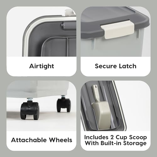 IRIS USA Dog Food Storage Container 58 lbs Attachable Wheels & Included Scoop for Dog Cat Birds and other Pets Food Storage Bin Keep Fresh Easy Mobility BPA Free - Made in the USA Dark Gray