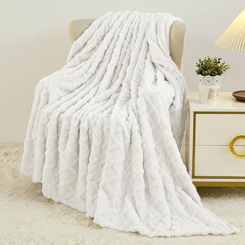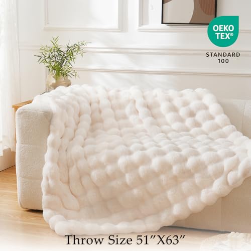 BENVWE Faux Fur Throw Blanket Fuzzy Bubble Blanket Soft Cozy...