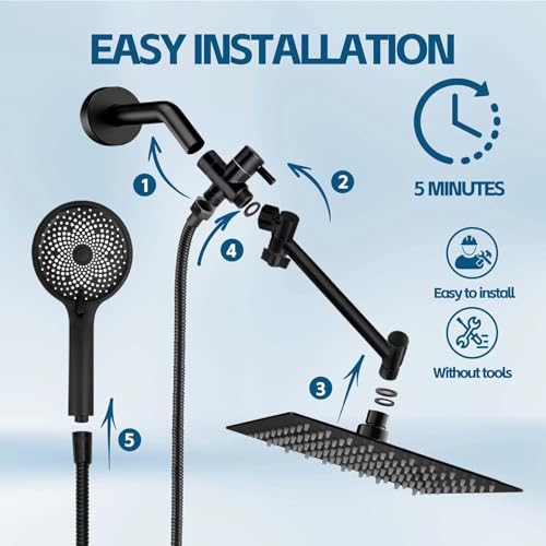 10 Inch Shower Head Black Rain Shower Head with Adustable Ex...