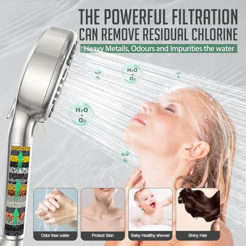 2025 NEW Ion Drops Shower Head Filtered Shower with Handheld Many Spray Modes Turbo with Built-in Filter ON/OFF Switch Handheld Turbo Showerhead