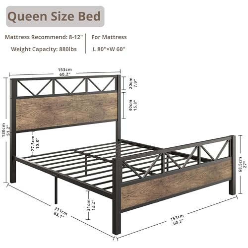 LIKIMIO Queen Bed Frame Tall Industrial Headboard 51.2 "" Pl...