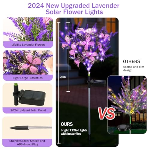 Solar Garden Lights Outdoor 2 Pack Purple Lavender Solar But...