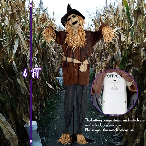 ATDAWN 6FT Halloween Standing Scarecrow Life-Size Animated G...