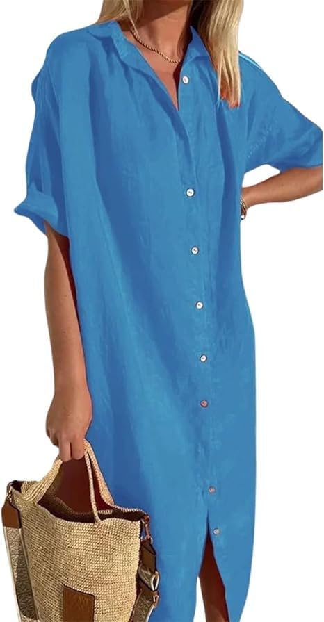BIVENANT Womens Cotton Linen Long Shirt Dresses Long Sleeve ...