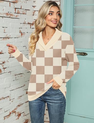 JomeDesign Fall Sweaters for Women 2025 Trendy Long Sleeve Sweatshirt for Women Fall Clothes Apricot XL