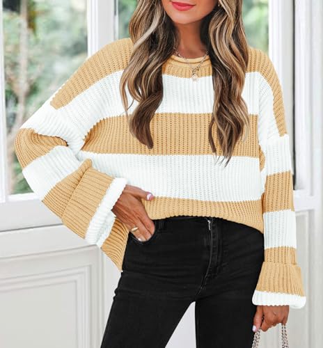 ZESICA Women's 2024 Fall Long Sleeve Crew Neck Striped Color...