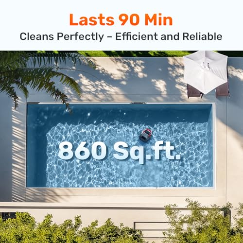 Gosvor Cordless Robotic Pool Cleaner Lasts 90 Min Automatic Vacuum for Above-Ground Pools up to 860 Sq.ft Portable Self-Parking Orange